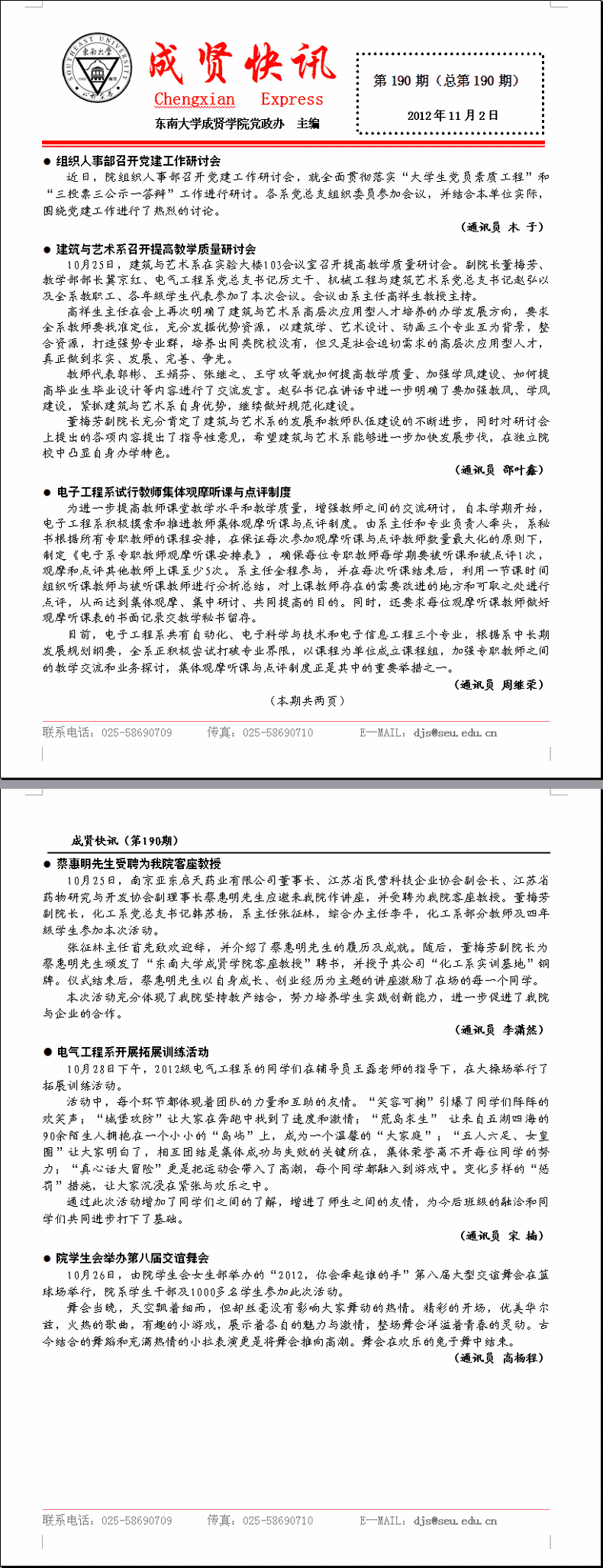 成贤快讯 第190期(总第190期) 2012年11月2日