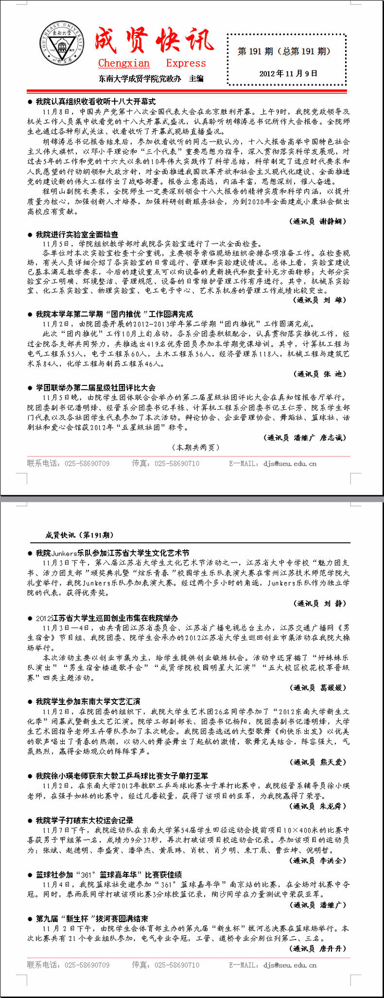 成贤快讯 第191期(总第191期) 2012年11月9日