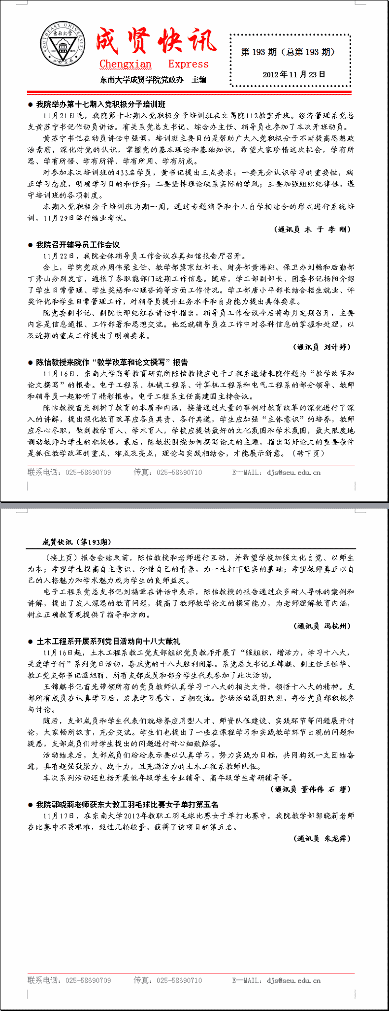 成贤快讯 第193期(总第193期) 2012年11月23日