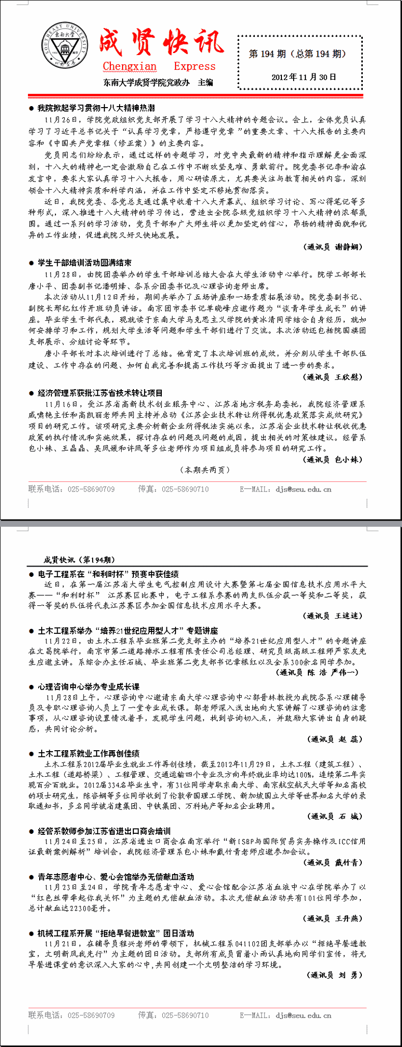 成贤快讯 第194期(总第194期) 2012年11月30日