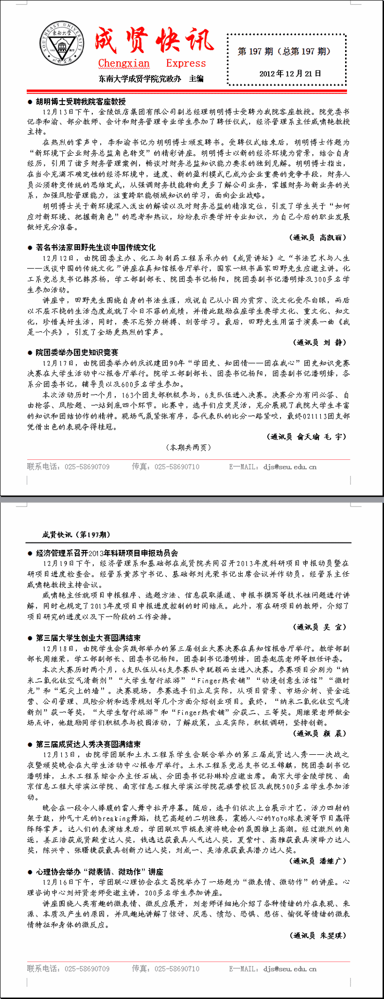 成贤快讯 第197期(总第197期) 2012年12月21日