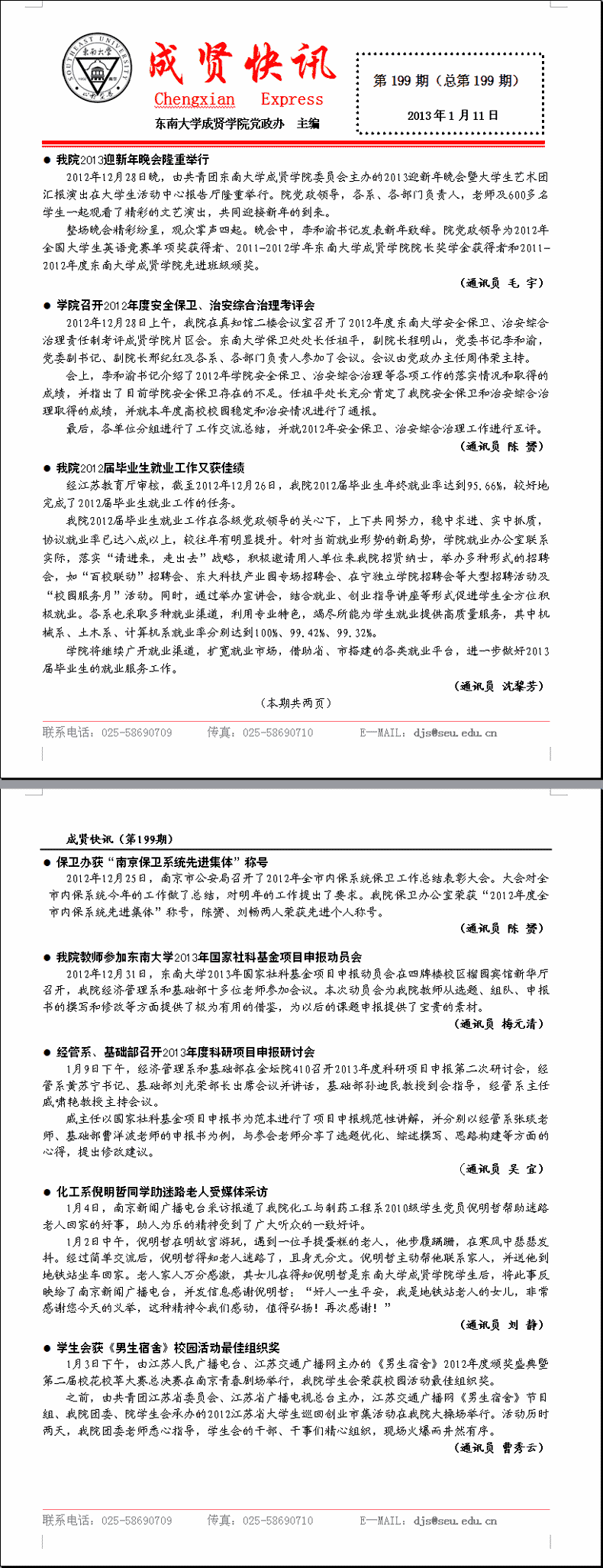 成贤快讯 第199期(总第199期) 2013年01月11日