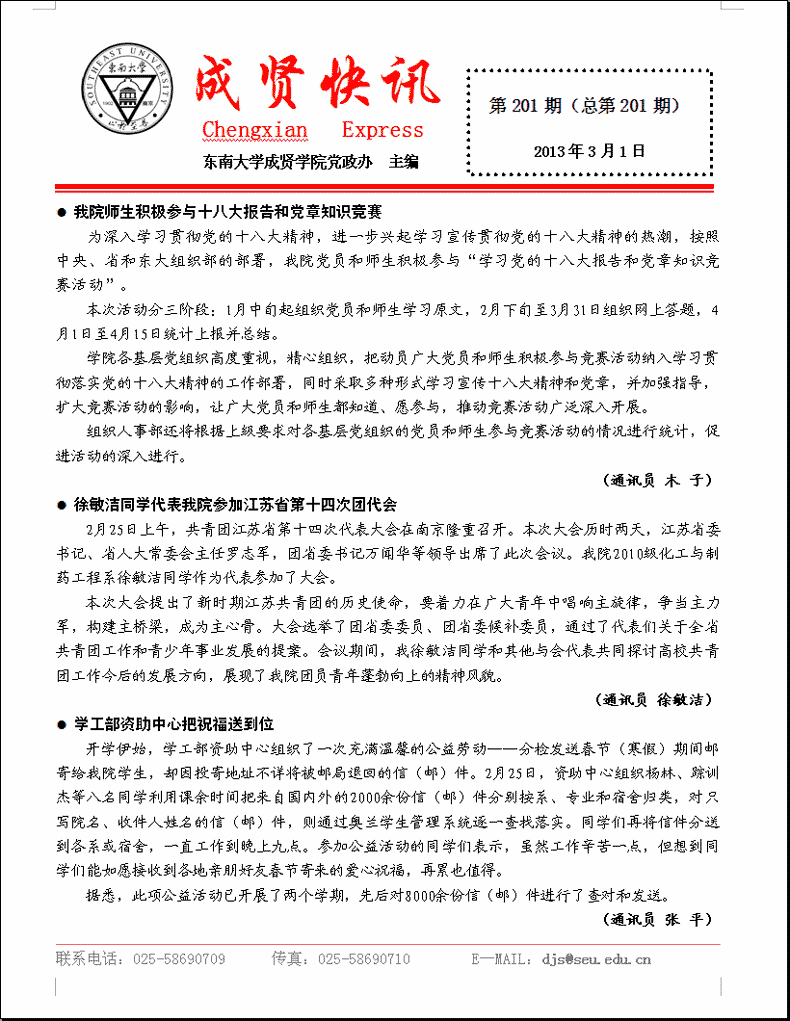 成贤快讯 第201期(总第201期) 2013年03月01日