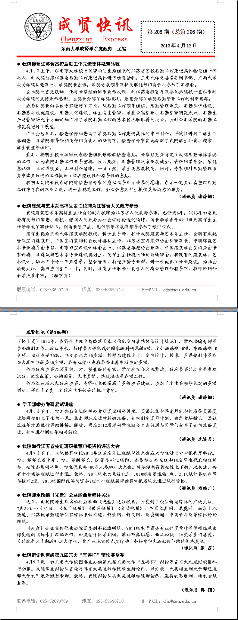 成贤快讯 第206期(总第206期) 2013年04月12日
