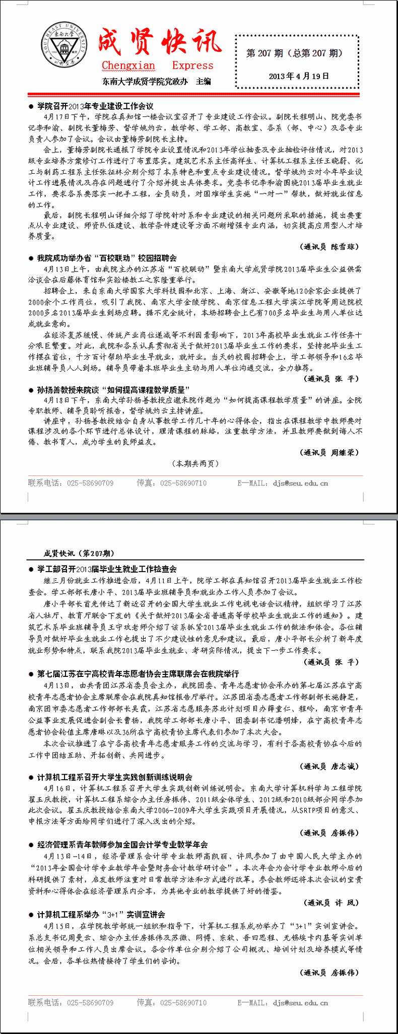 成贤快讯 第207期(总第207期) 2013年04月19日