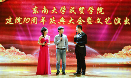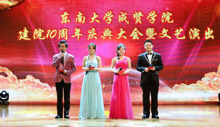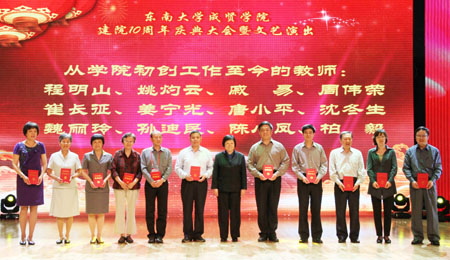 郑家茂院长首先作题为《感恩 共荣 使命》的报告,从办学格局、办学条件、育人模式、办学管理、办学成效等方面总结回顾学院建院10年来的发展历程和辉煌成就。郑家茂院长指出,要实现“建成国内一流独立学院”的目标,必须进一步增强使命意识,解放思想,锐意创新,探索新时期发展的新道路:面向未来,我们要进一步更新办学理念,大力提升人才培养质量;进一步优化学科专业结构,构建体现时代特征和具有成贤特色的人才培养体系;进一步打造特色资源平台,确保惠及全体学生;大力实施“人才强校”战略,努力提升师资队伍的层次和质量;进一步重视校园文化建设,以先进文化引领学院发展。最后,郑家茂院长说:学院将以建院十周年为契机,把“创建国内一流的独立学院”的成贤梦融入东大梦,融入强省、强国梦,以更加广阔的视野、更加饱满的热情、更加开放的姿态、更加进取的精神,全面开创云鼎国际4118welcome事业发展的新局面,为实现民族伟大复兴的中国梦作出新的更大贡献!