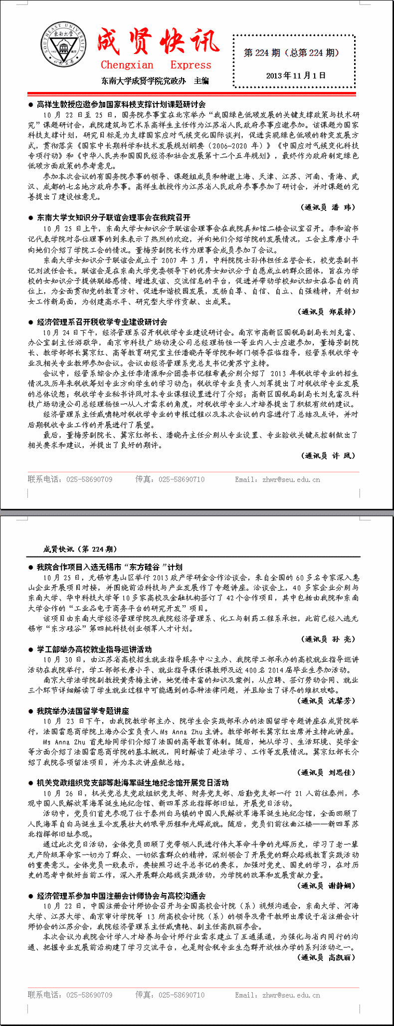 成贤快讯 第224期(总第224期) 2013年11月01日