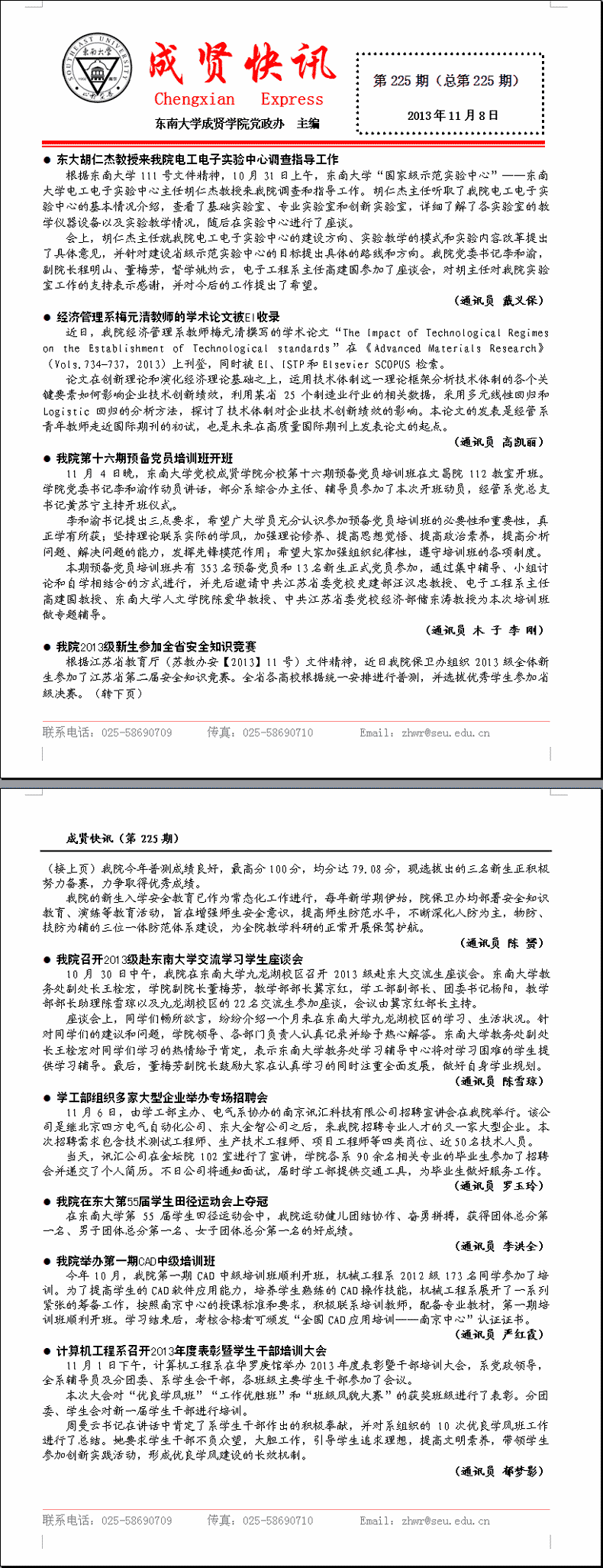成贤快讯 第225期(总第225期) 2013年11月08日