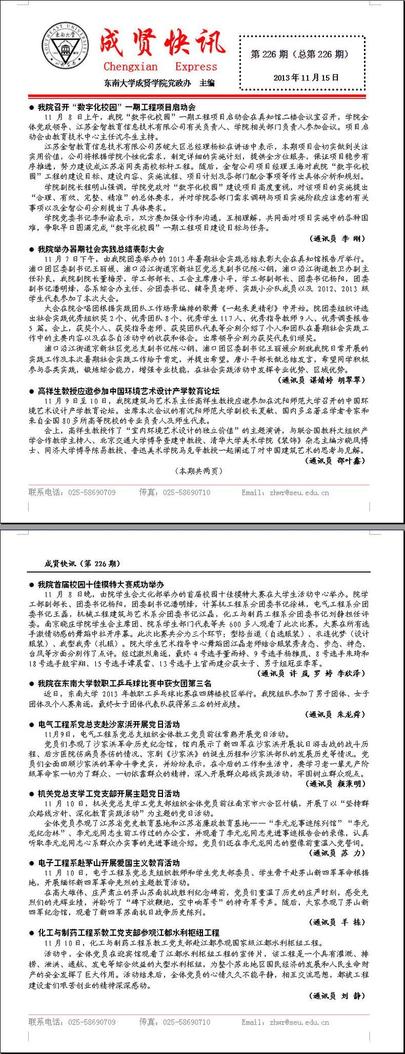 成贤快讯 第226期(总第226期) 2013年11月15日