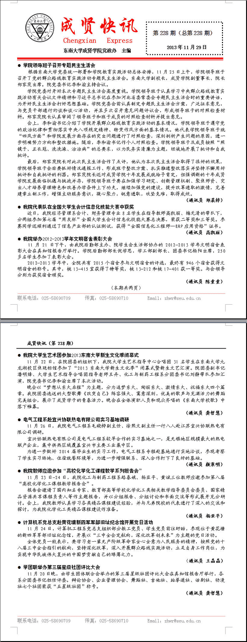 成贤快讯 第228期(总第228期) 2013年11月29日