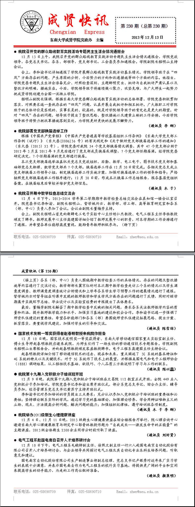 成贤快讯 第230期(总第230期) 2013年12月13日