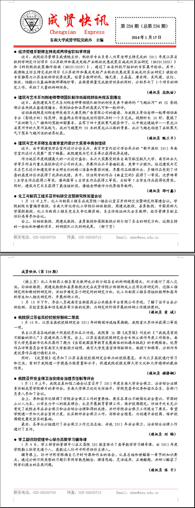 成贤快讯 第234期(总第234期) 2014年01月17日