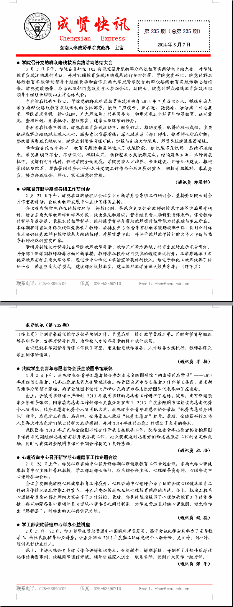 成贤快讯 第235期(总第235期) 2014年03月07日