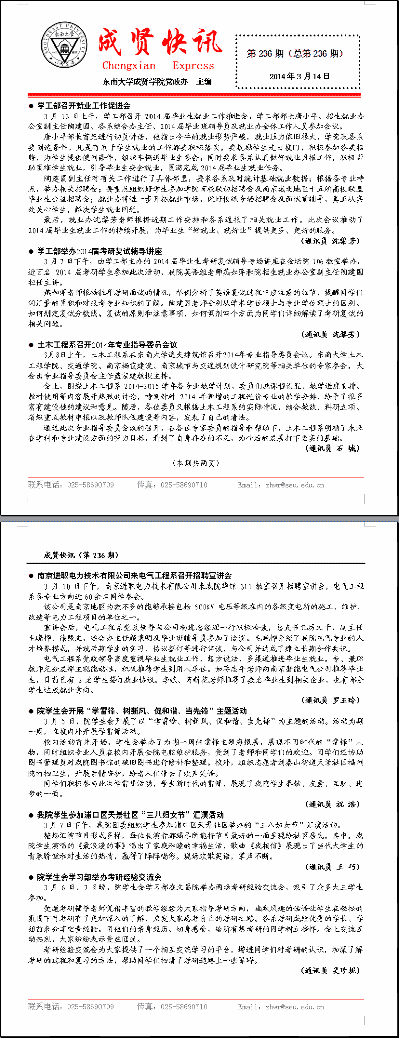 成贤快讯 第236期(总第236期) 2014年03月14日