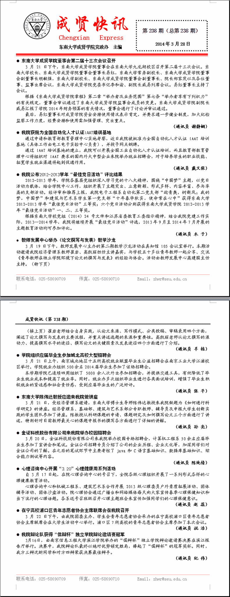 成贤快讯 第238期(总第238期) 2014年03月28日