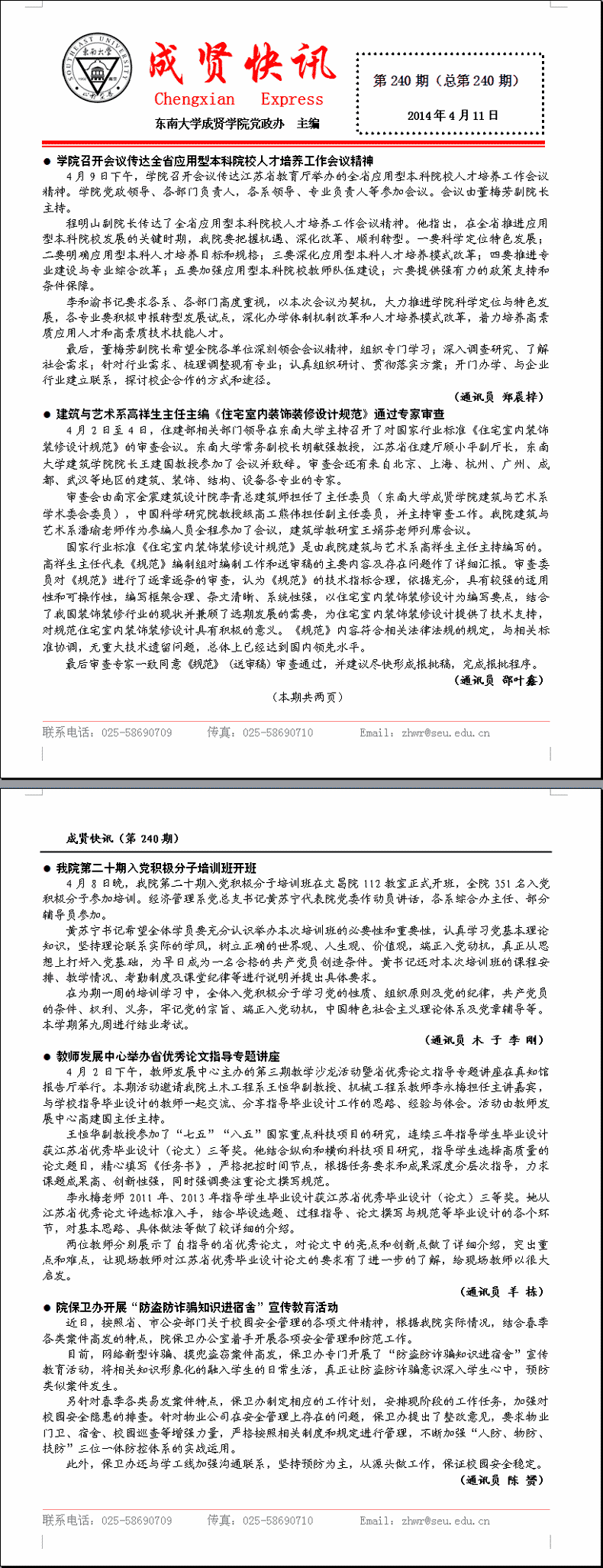 成贤快讯 第240期(总第240期) 2014年04月11日