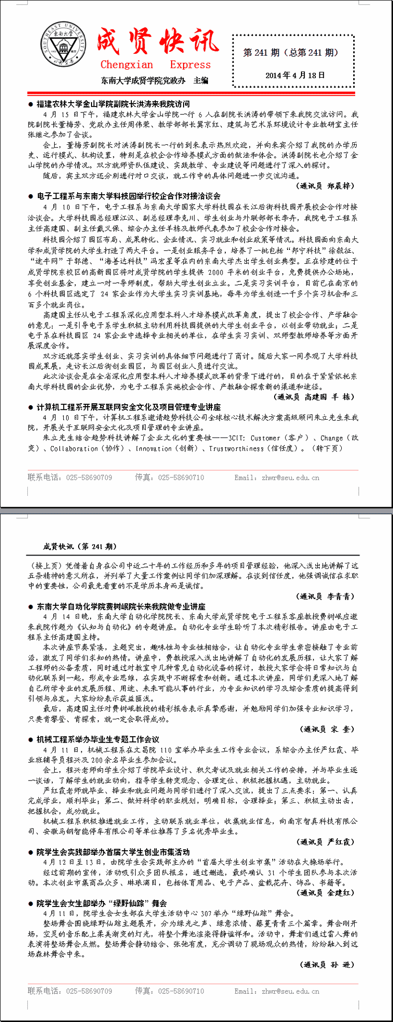 成贤快讯 第241期(总第241期) 2014年04月18日