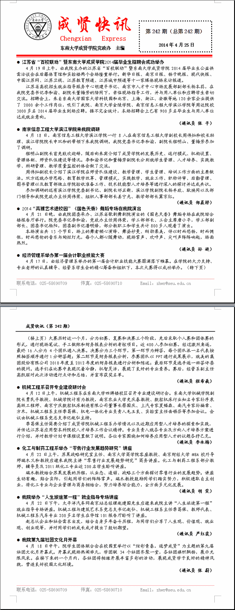 成贤快讯 第242期(总第242期) 2014年04月25日