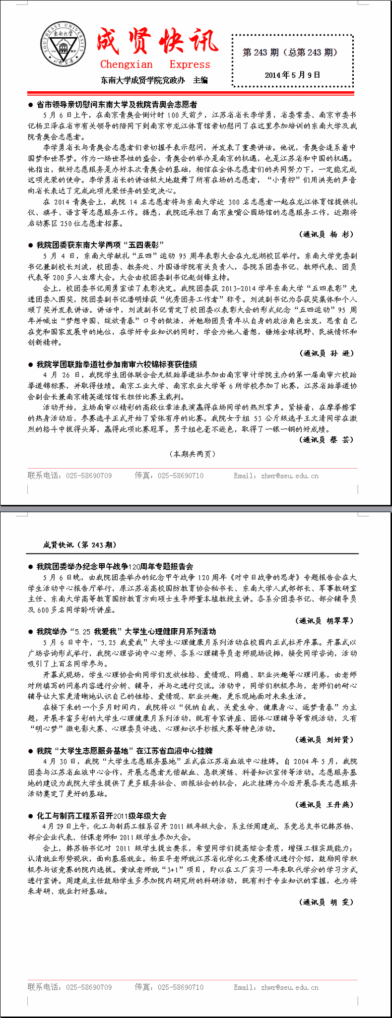 成贤快讯 第243期(总第243期) 2014年05月09日