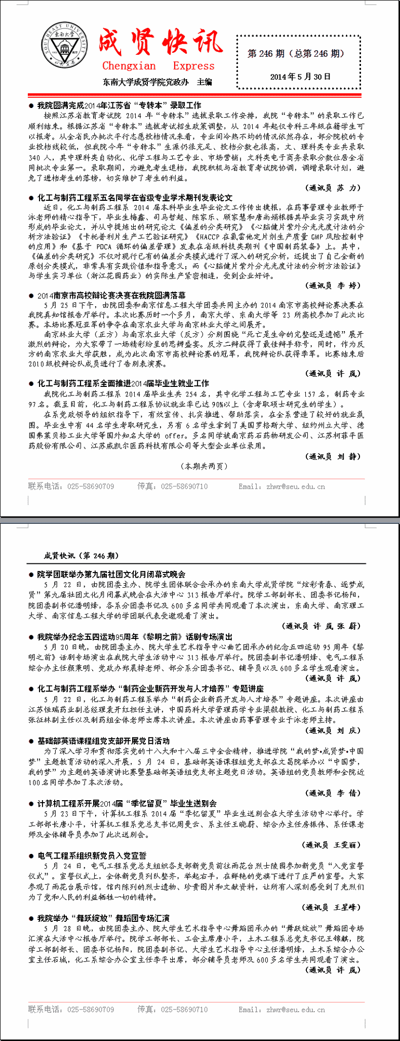 成贤快讯 第246期(总第246期) 2014年05月30日