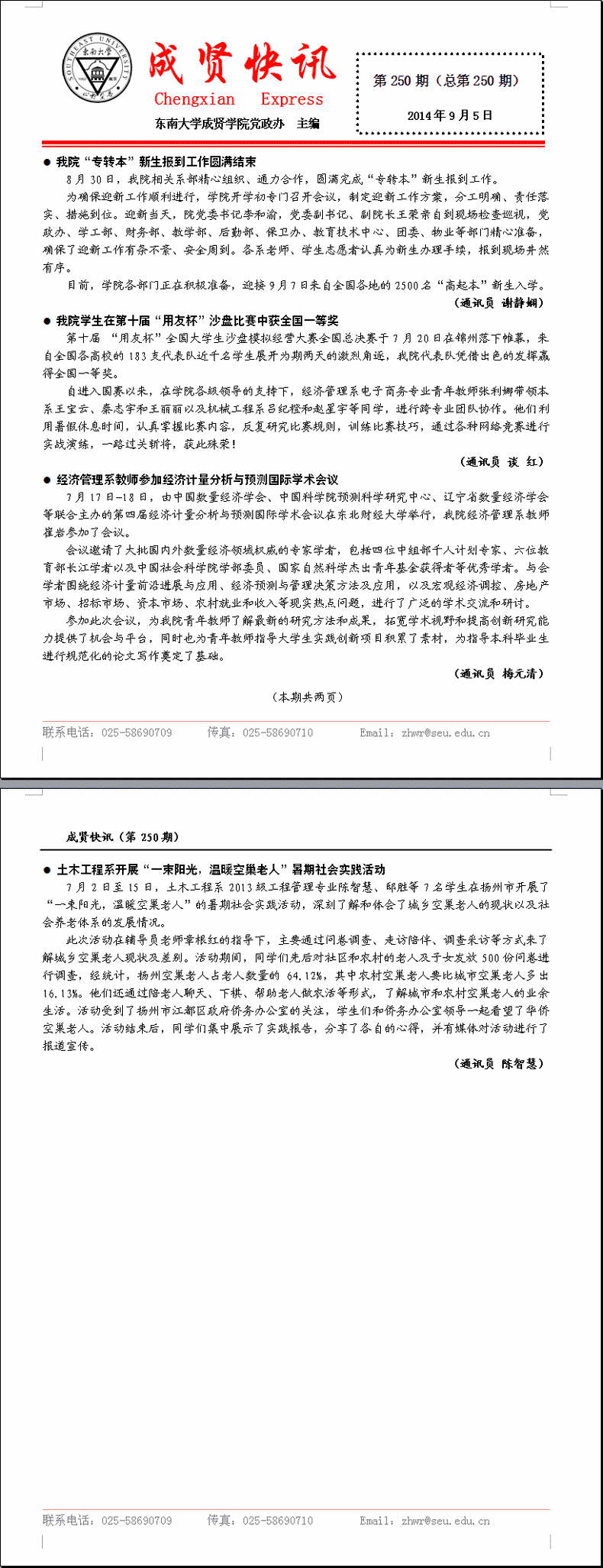 成贤快讯 第250期(总第250期) 2014年09月05日