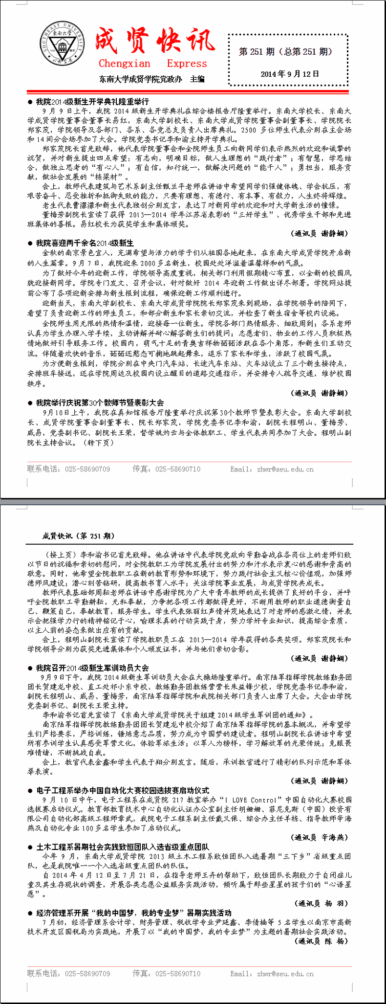 成贤快讯 第251期(总第251期) 2014年09月12日