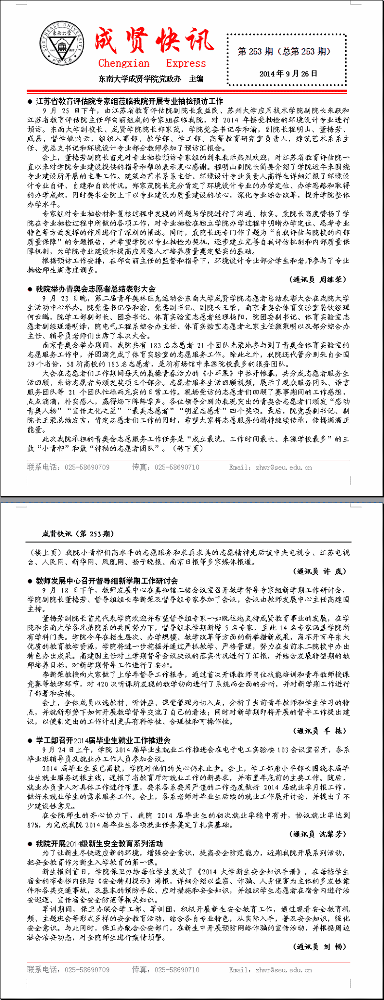 成贤快讯 第253期(总第253期) 2014年09月26日