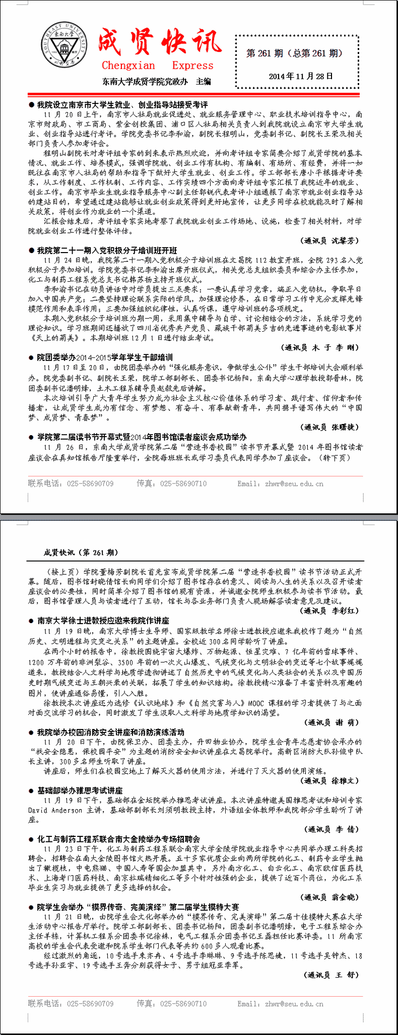 成贤快讯 第261期(总第261期) 2014年11月28日