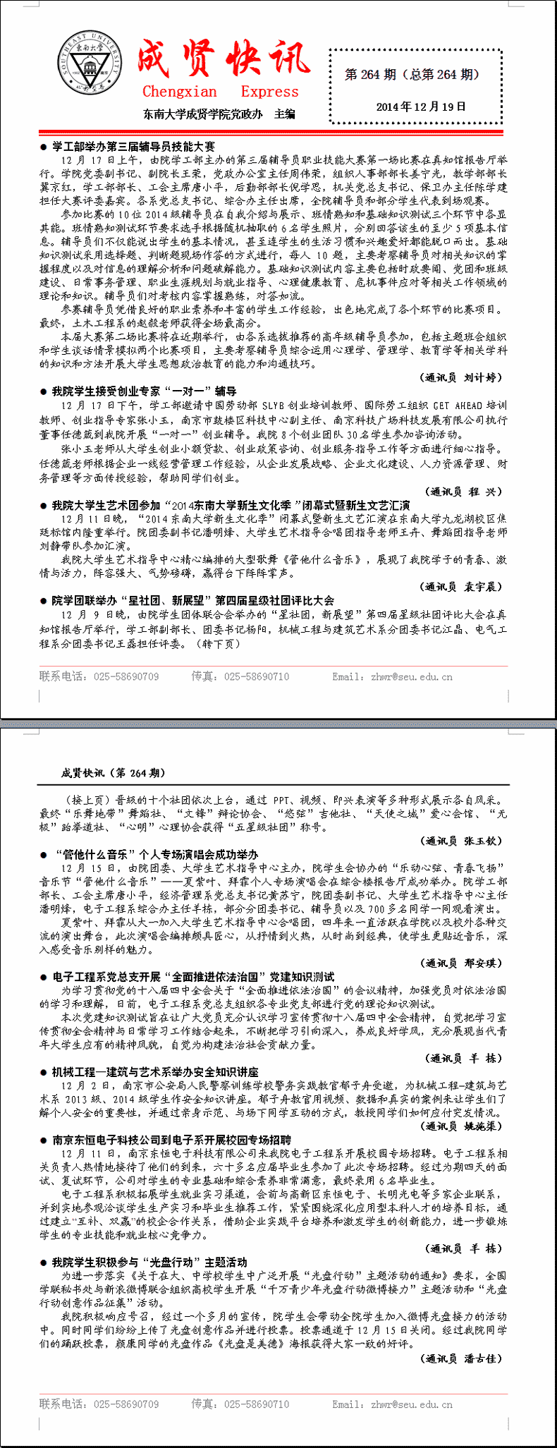 成贤快讯 第264期(总第264期) 2014年12月19日