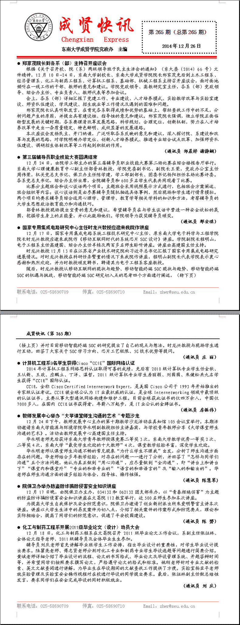 成贤快讯 第265期(总第265期) 2014年12月26日