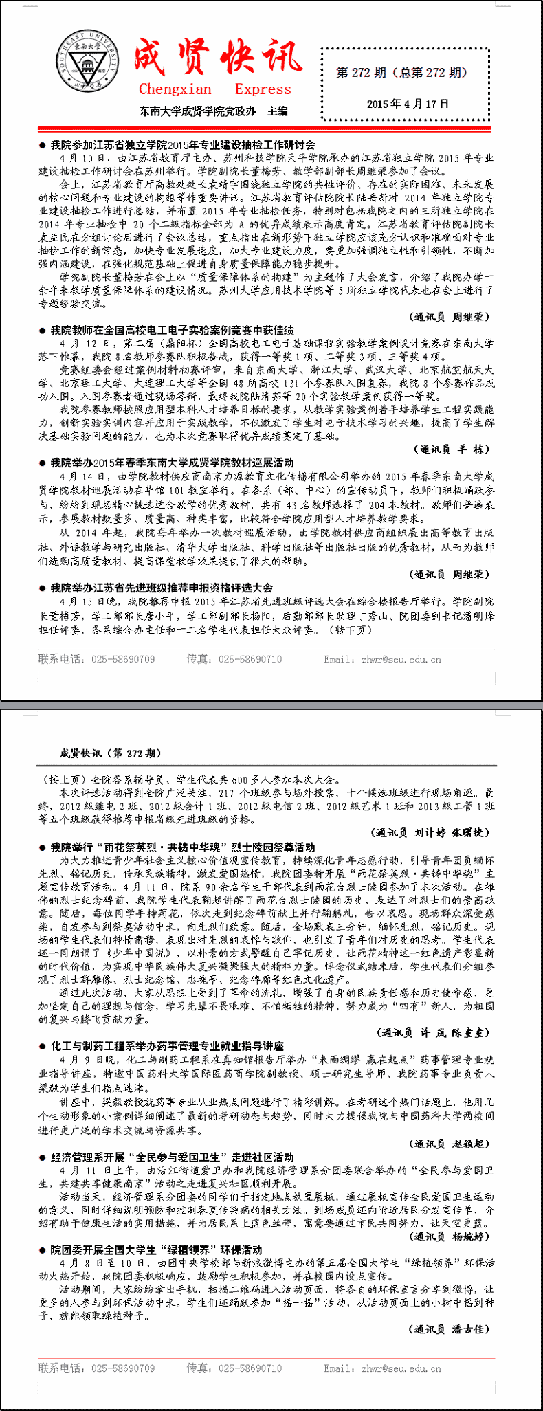 成贤快讯 第272期(总第272期) 2015年04月17日