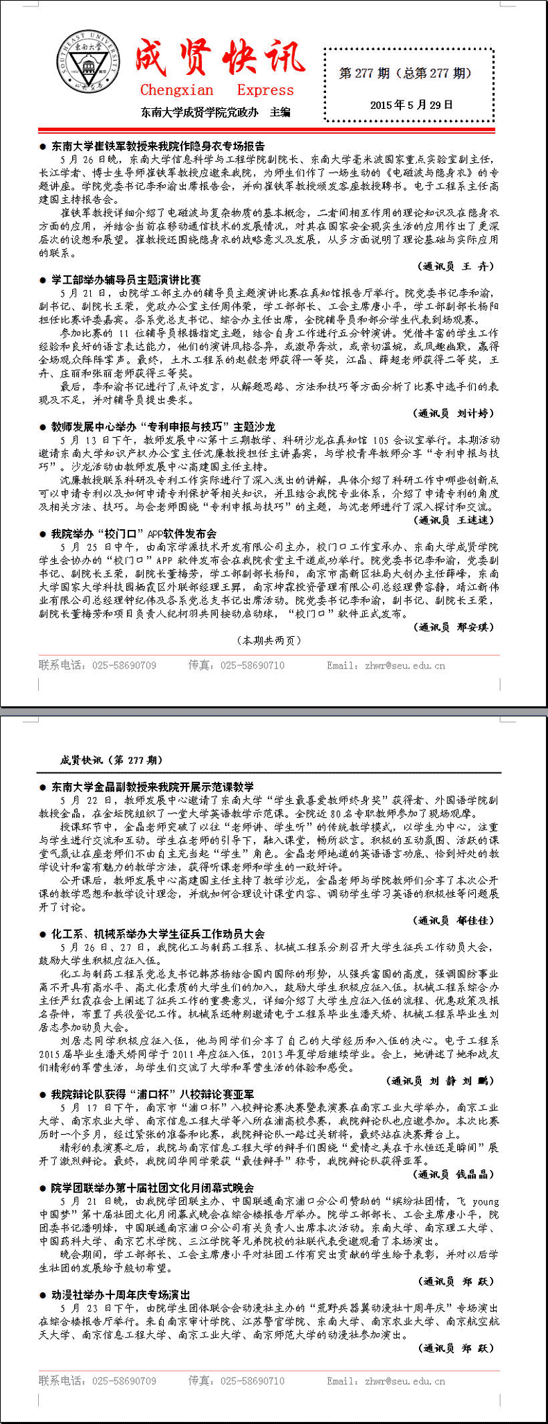 成贤快讯 第277期(总第277期) 2015年05月29日