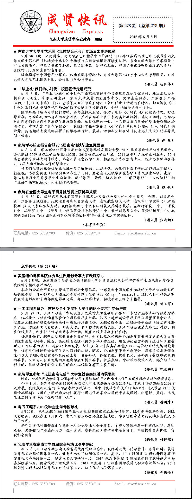 成贤快讯 第278期(总第278期) 2015年06月05日