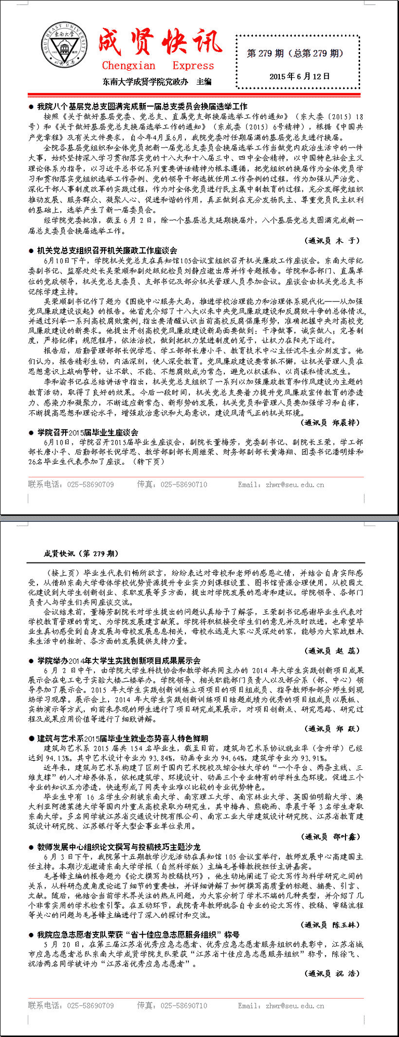 成贤快讯 第279期(总第279期) 2015年06月12日