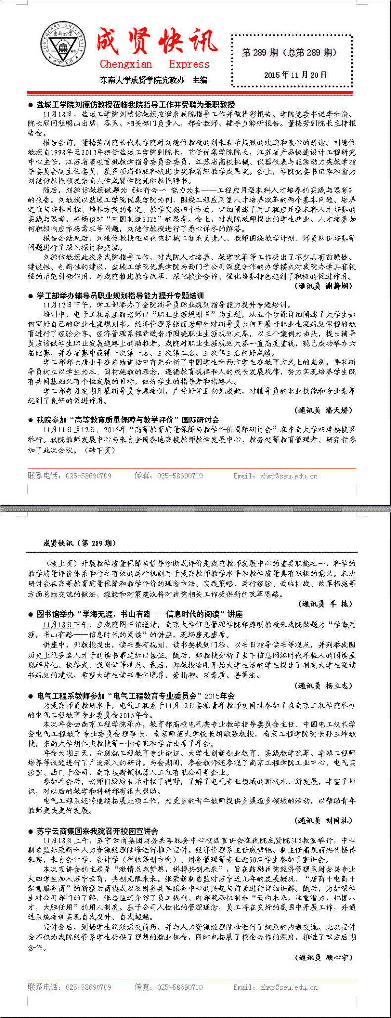 成贤快讯 第289期(总第289期) 2015年11月20日