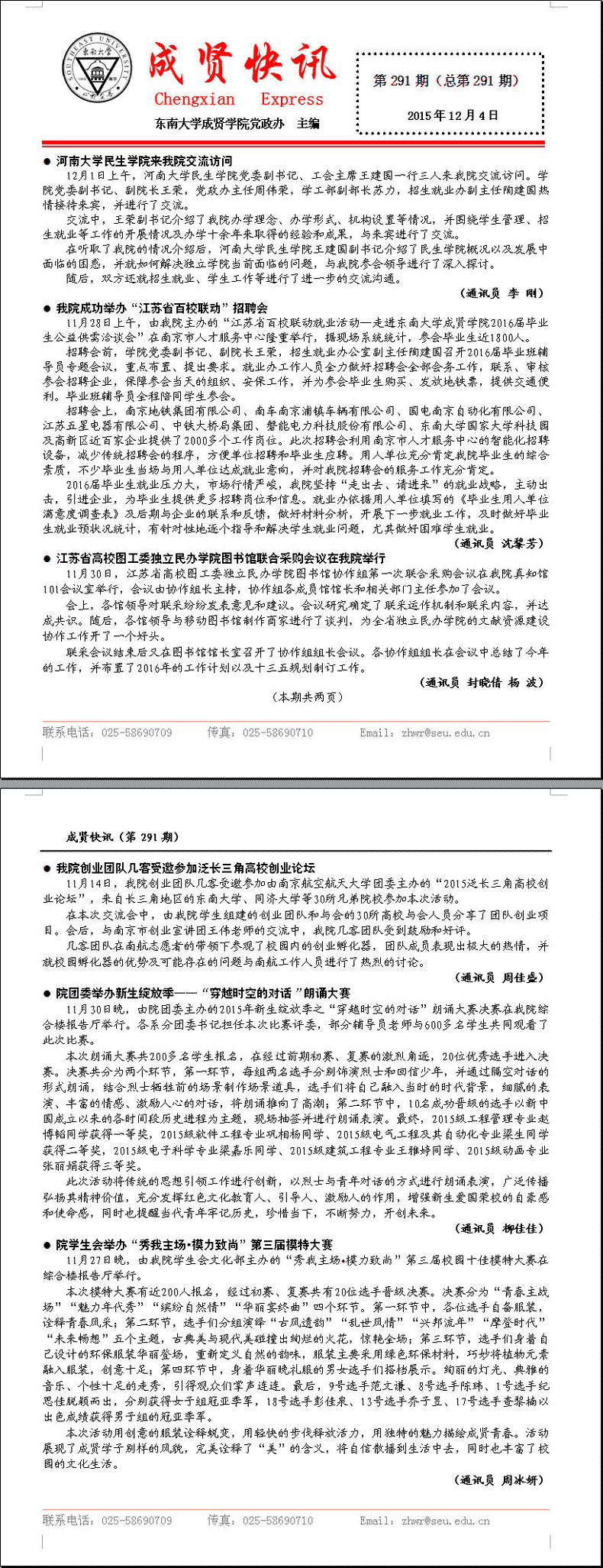 成贤快讯 第291期(总第291期) 2015年12月04日
