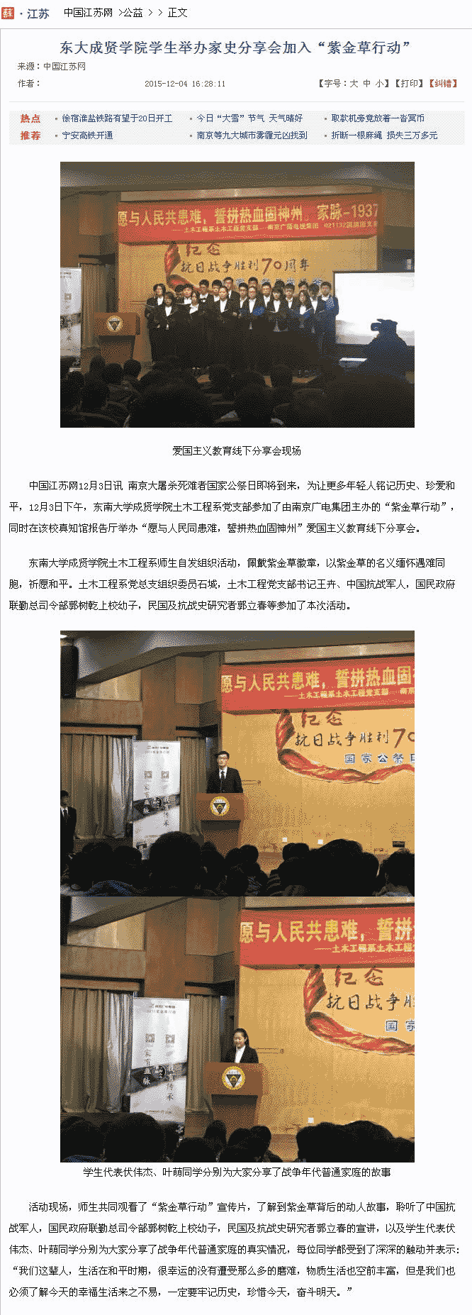 【中国江苏网】东大云鼎国际4118welcome学生举办家史分享会加入“紫金草行动”
