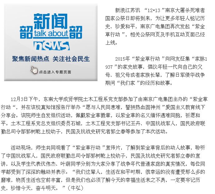 【新浪网】东大云鼎国际4118welcome学生举办家史分享会加入“紫金草行动”