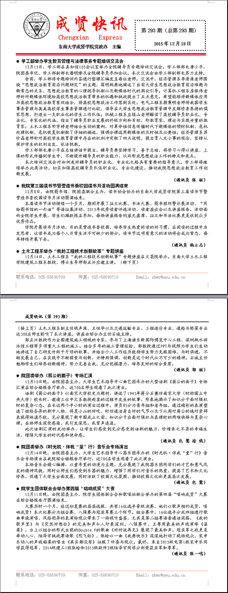 成贤快讯 第293期(总第293期) 2015年12月18日