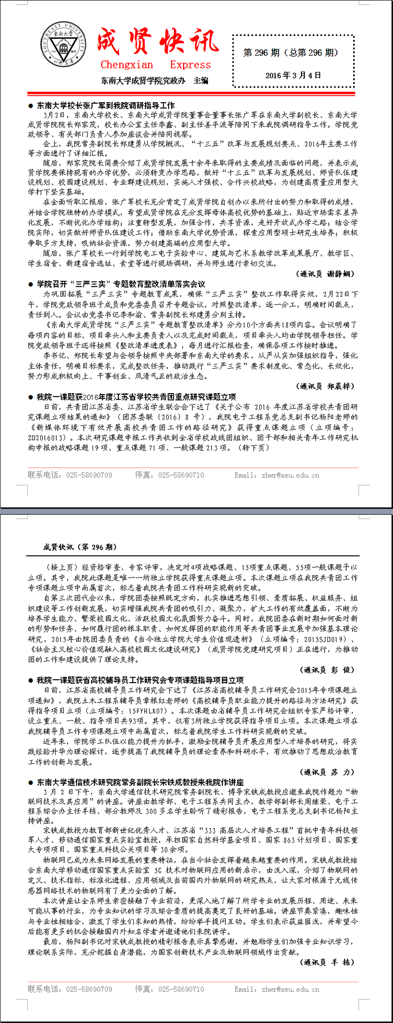 成贤快讯 第296期(总第296期) 2016年03月04日