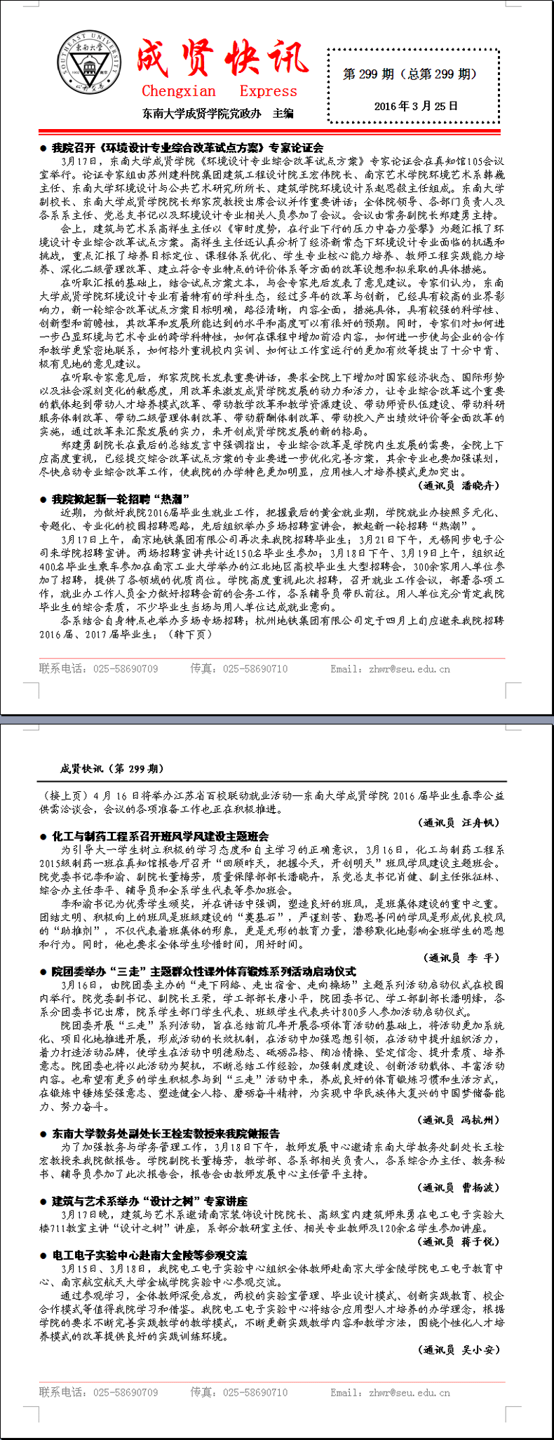 成贤快讯 第299期(总第299期) 2016年03月25日