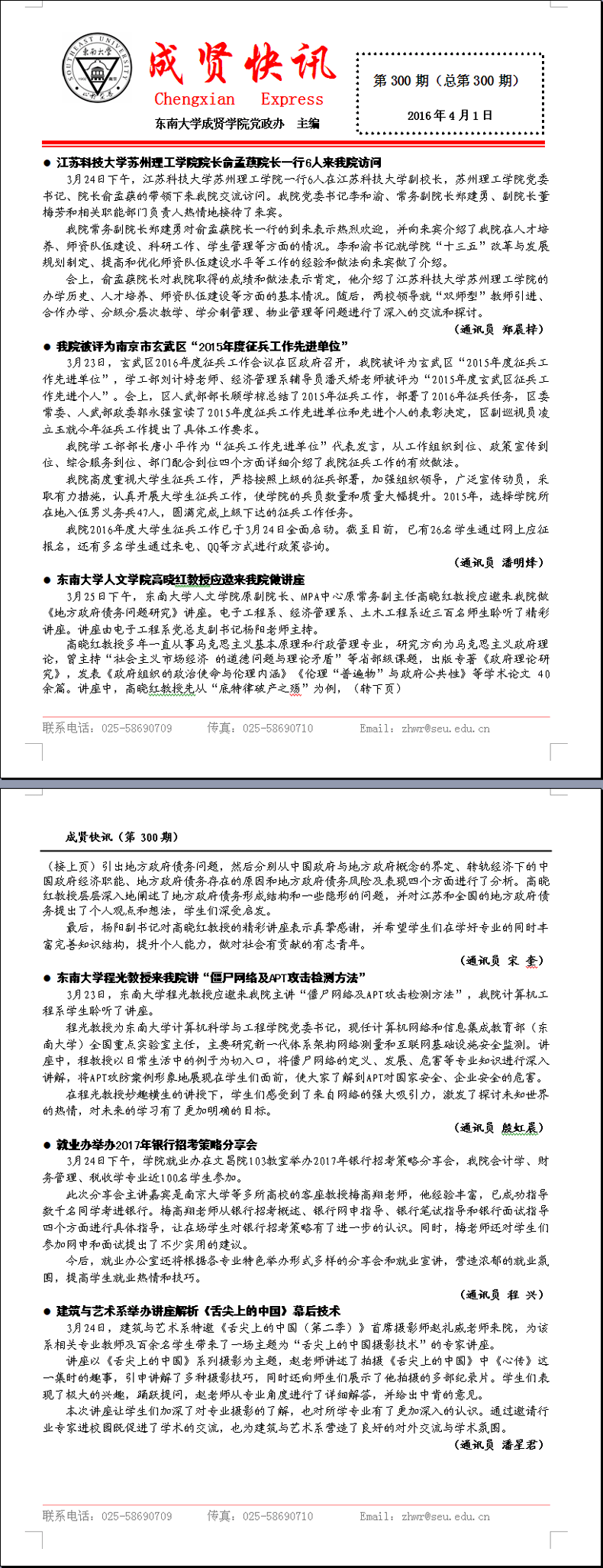 成贤快讯 第300期(总第300期) 2016年04月01日