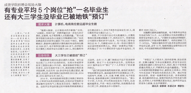 【东方卫报】有专业平均5个岗位“抢”一名毕业生 还有大三学生没毕业已被地铁“预订”