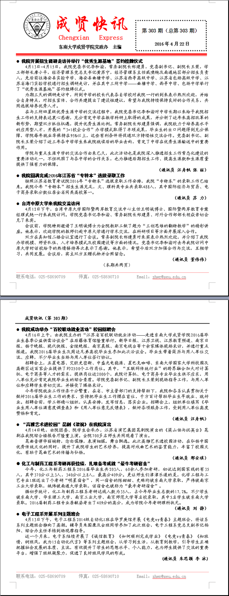 成贤快讯 第303期(总第303期) 2016年04月22日