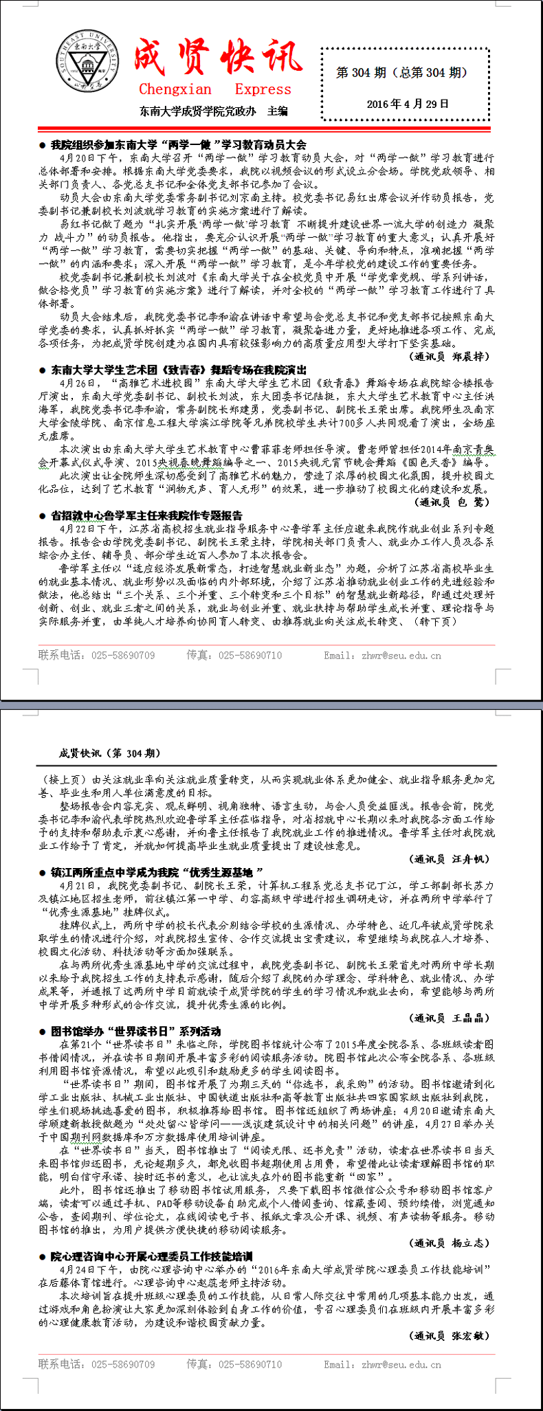 成贤快讯 第304期(总第304期) 2016年04月29日