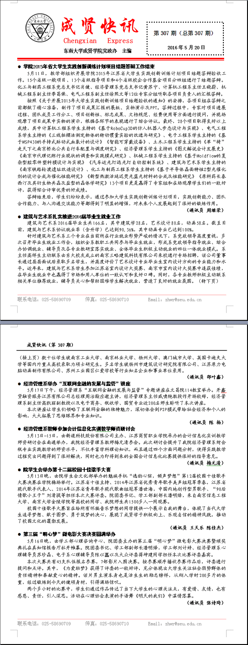成贤快讯 第307期(总第307期) 2016年05月20日