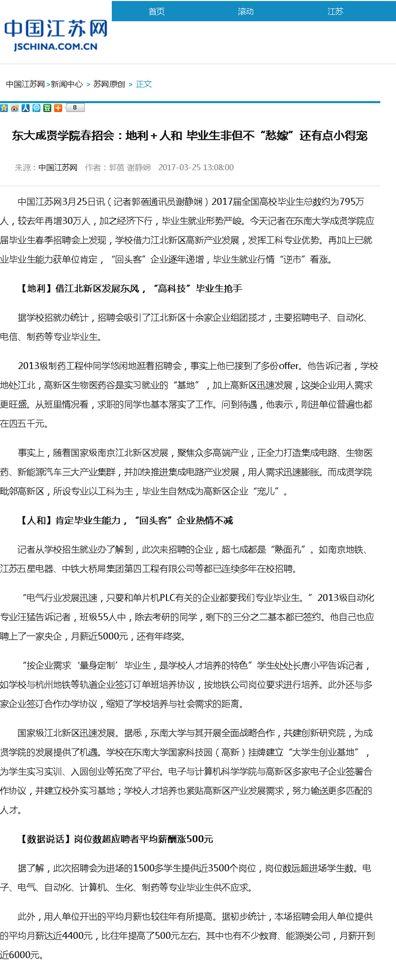 【中国江苏网】东大云鼎国际4118welcome春招会:地利+人和 毕业生非但不“愁嫁”还有点小得宠