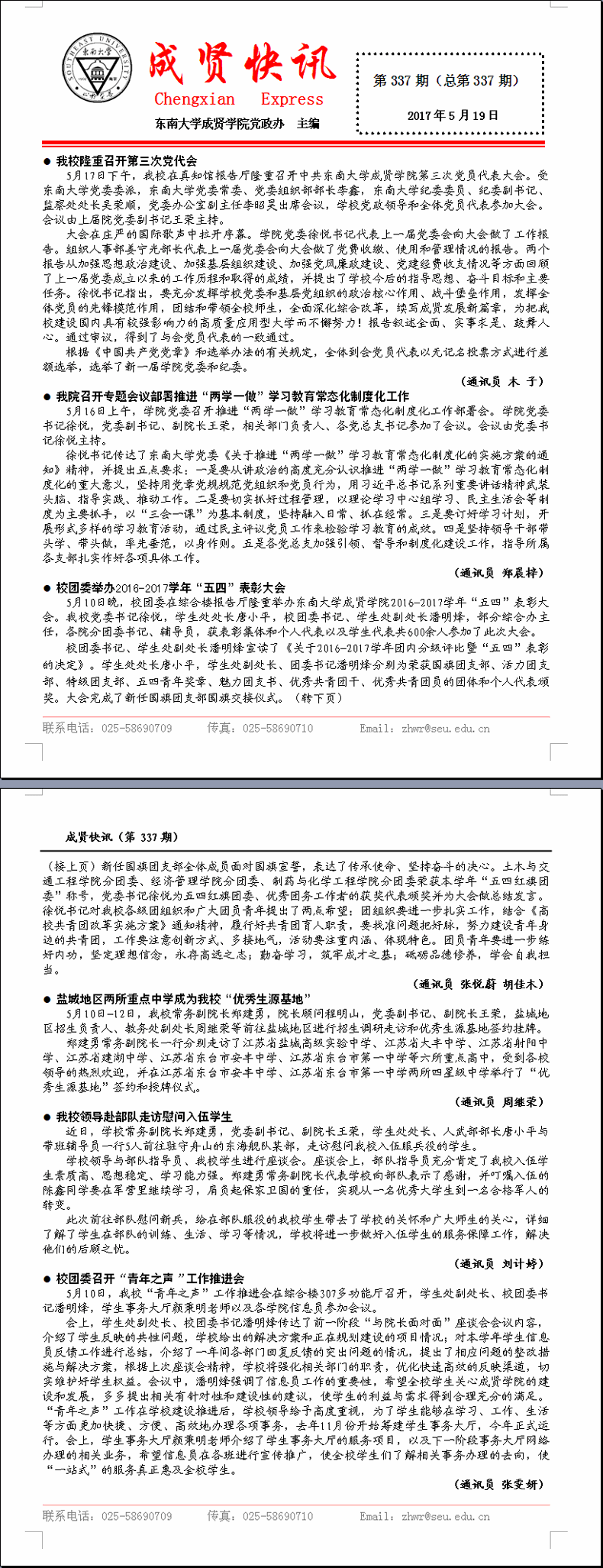 成贤快讯 第337期(总第337期) 2017年05月19日