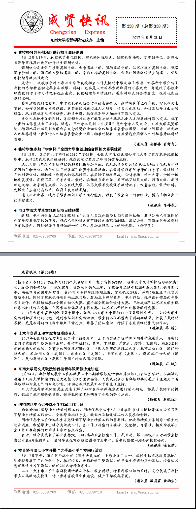 成贤快讯 第338期(总第338期) 2017年05月26日