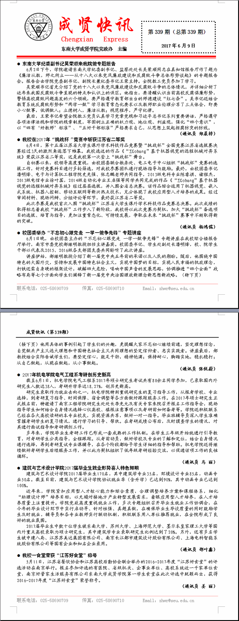 成贤快讯 第339期(总第339期) 2017年06月09日